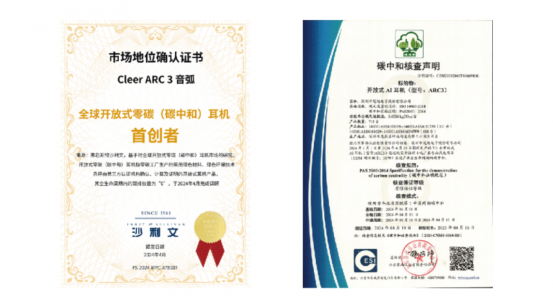 In addition to technological innovation, the sustainable development concept of ARC 3 Sound Arc is also worthy of praise. As the world's first open AI earphone intelligently manufactured by a zero carbon factory, ARC 3 Sound Arc strictly adheres to the low-carbon concept throughout the entire process of raw material selection, production, and transportation. The materials used in the product are all recyclable, recyclable and environmentally friendly. The entire production process uses green energy, actively responding to the global sustainable development strategy with practical actions, and has obtained zero carbon (carbon neutrality) certification from international authoritative certification agencies Sullivan and Cecil.