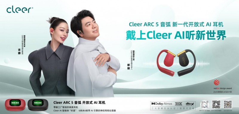 In 2025, Cleer will once again release a new open AI earphone Cleer ARC 5 with a disruptive momentum, achieving comprehensive evolution on the technical accumulation of ARC 3. As the world's first open earphone that integrates the top three audio technologies of Dolby, THX, and DTS, the ARC 5 not only achieves a breakthrough in sound field spatial perception and sound quality performance, but also features a self-developed AI intelligent agent "Tingdao" for the first time, supporting multiple mainstream AI models, bringing AI simultaneous interpretation, AI voice assistant, AI voice real-time note taking and other functions, making the earphone no longer a single listening device, but a "AI productivity on the ear". This flagship new product has become another iconic achievement of Cleer's continuous deepening of the intelligent audio track and leading industry innovation.
